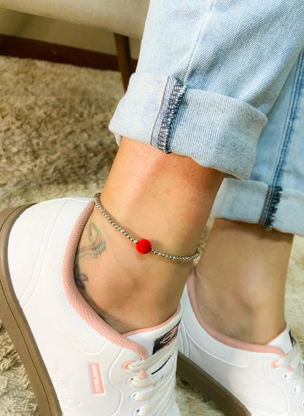 Tornozeleira básica de bolinhas, perfeita pra usar sozinha ou fazendo combinações pra deixar seu tornozelo cheio de estilo.